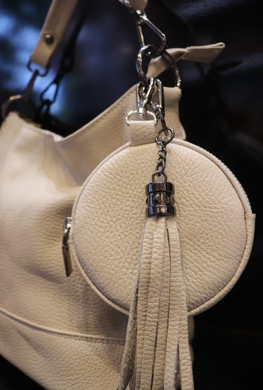 Le porte clé est un accessoire pratique pour garder ses clefs à portée de main en dehors du sac. Il permet de les attacher facilement à une boucle ou une anse, évitant ainsi de les perdre ou de les chercher dans le sac. Grâce à ce porte clé, il est possible de les garder en sécurité et de les retrouver rapidement lorsqu'on en a besoin. C'est un petit objet très utile au quotidien, surtout pour ceux qui ont tendance à égarer leurs clefs. Il suffit de les accrocher au porte clé et de le mettre en dehors du sac, ce qui facilite également l'accès aux clefs sans avoir à fouiller dans le sac à chaque fois.